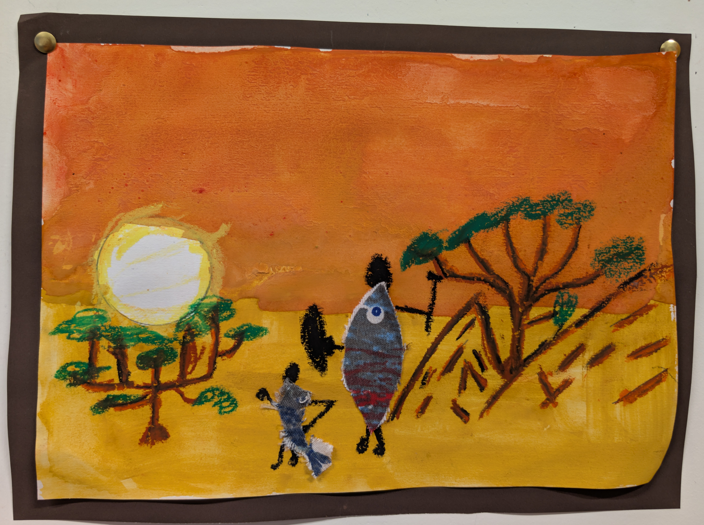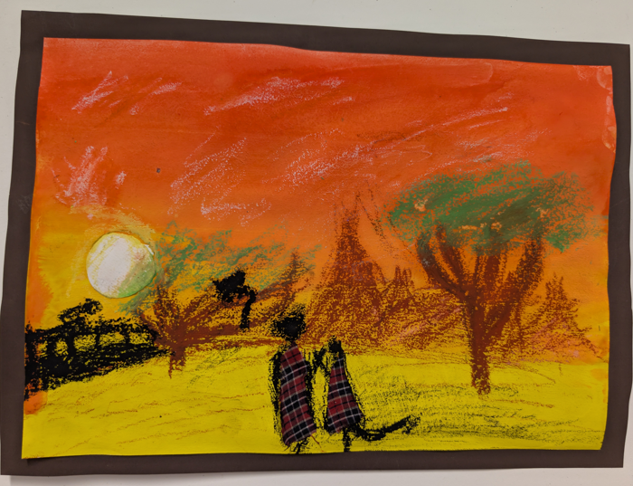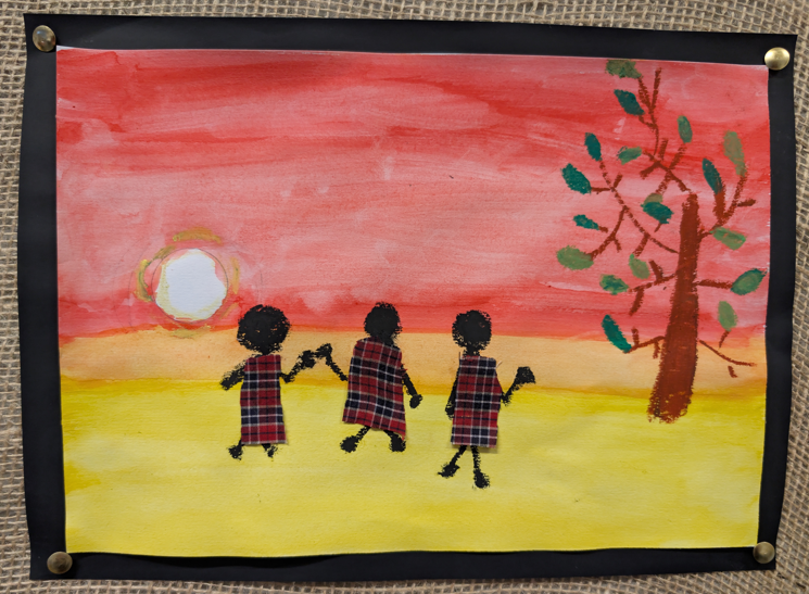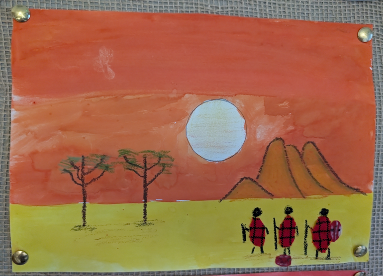 Year 3 and Year 4 pupils have been exploring the vibrant artwork of Sarah Shiundu as part of their Kenya topic. They have studied her distinctive style and learnt how artists use colour, texture and pattern to bring landscapes to life. Using a combination of media, including pastels, material collage and paint washes for their backgrounds, the children have created their own African-inspired scenes, carefully mimicking Shiundu’s techniques. This mixed-media approach has helped pupils to develop confidence in experimenting with materials while producing bold and expressive artwork that celebrates both creativity and cultural learning.