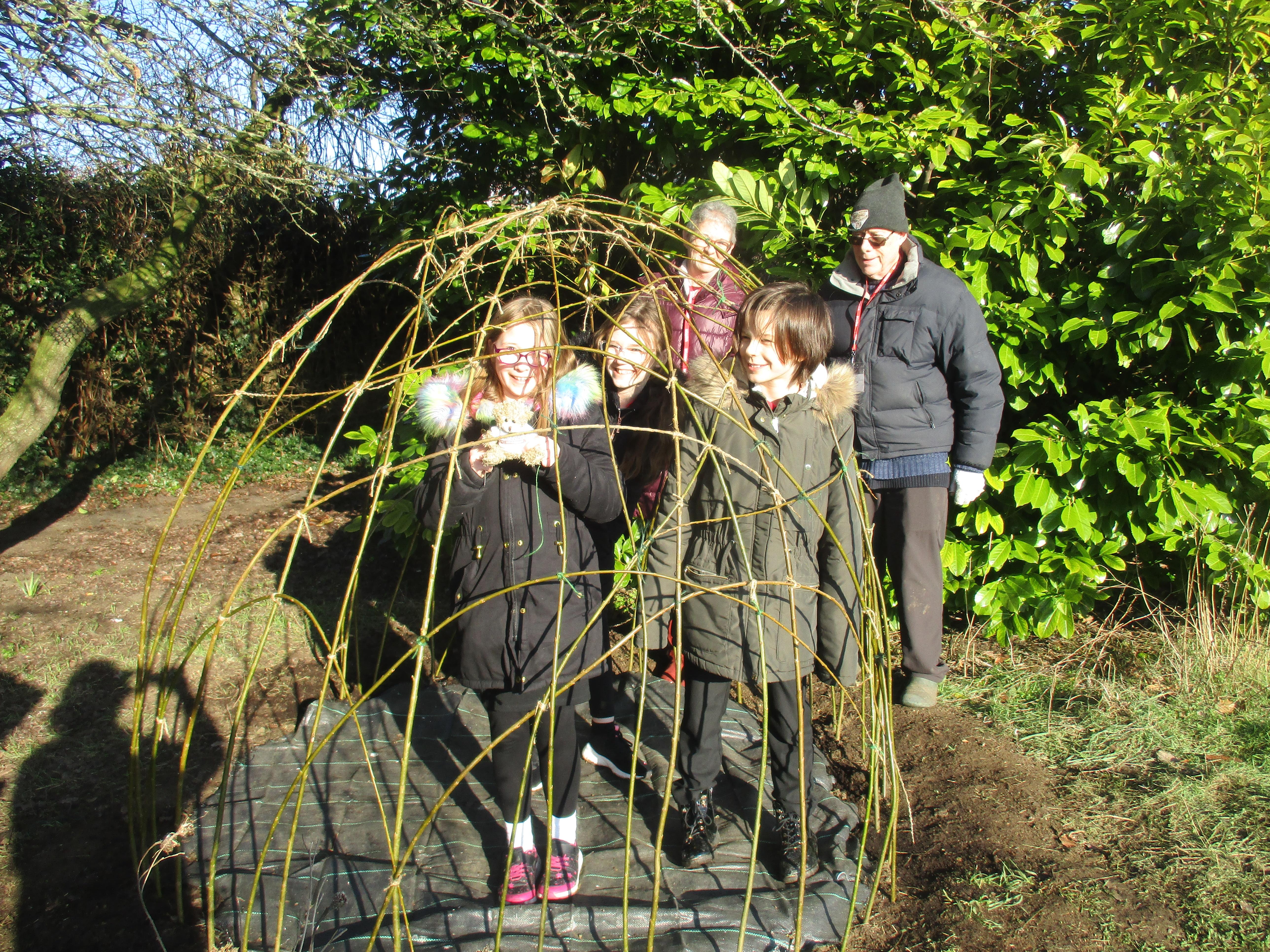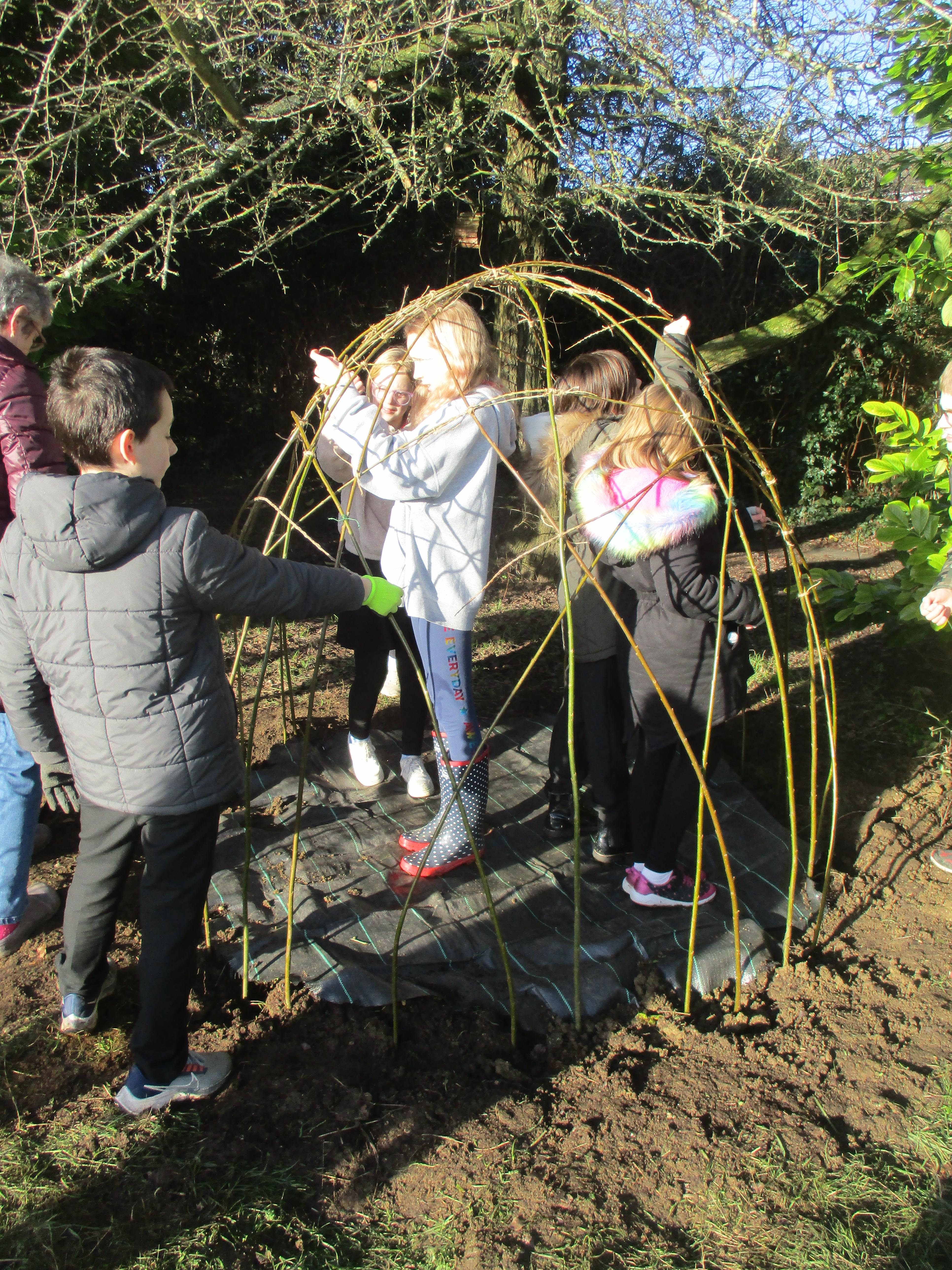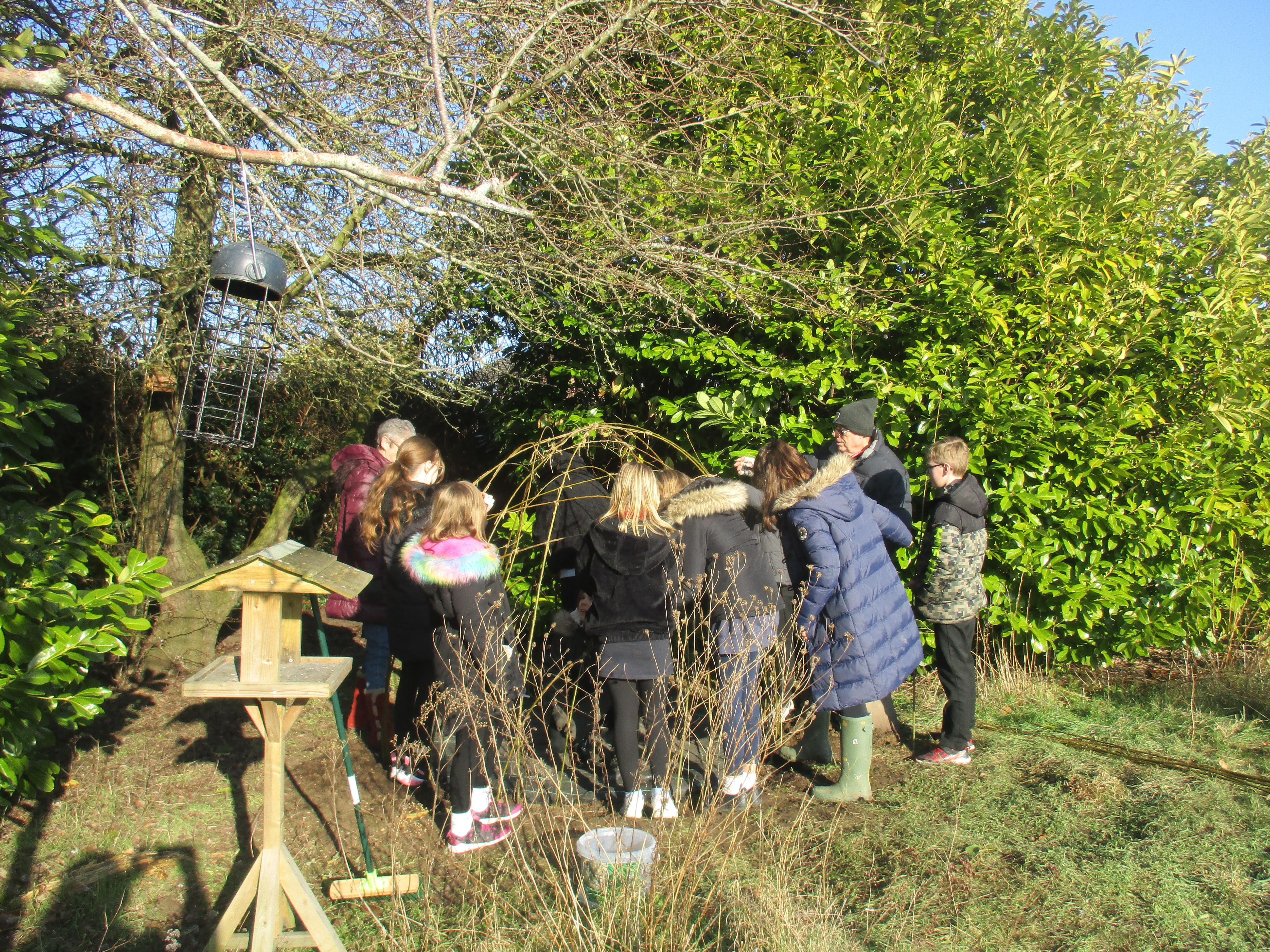 We are so lucky to now have a willow den within our much-loved nature area. It is perfectly situated in a sunny position to help it thrive. Now it has been planted and carefully woven to strengthen its structure, we will await it taking root and developing into a fun den for children of all ages to enjoy. It could also provide a peaceful spot in which to read, or just sit quietly and listen to birdsong as we have so many different types of birds enjoying our feeders now. We have a resident robin that often watches us work; he has eluded us when we have tried to capture him on camera so far, but we will keep trying! Thank-you to everyone who has donated fat-balls for our birds: we really appreciate you helping us help our birds. We always need donations, so if you ever have any spare fat-balls or birdseed, please send these in to our school office who can accept any donations that do not contain nuts.