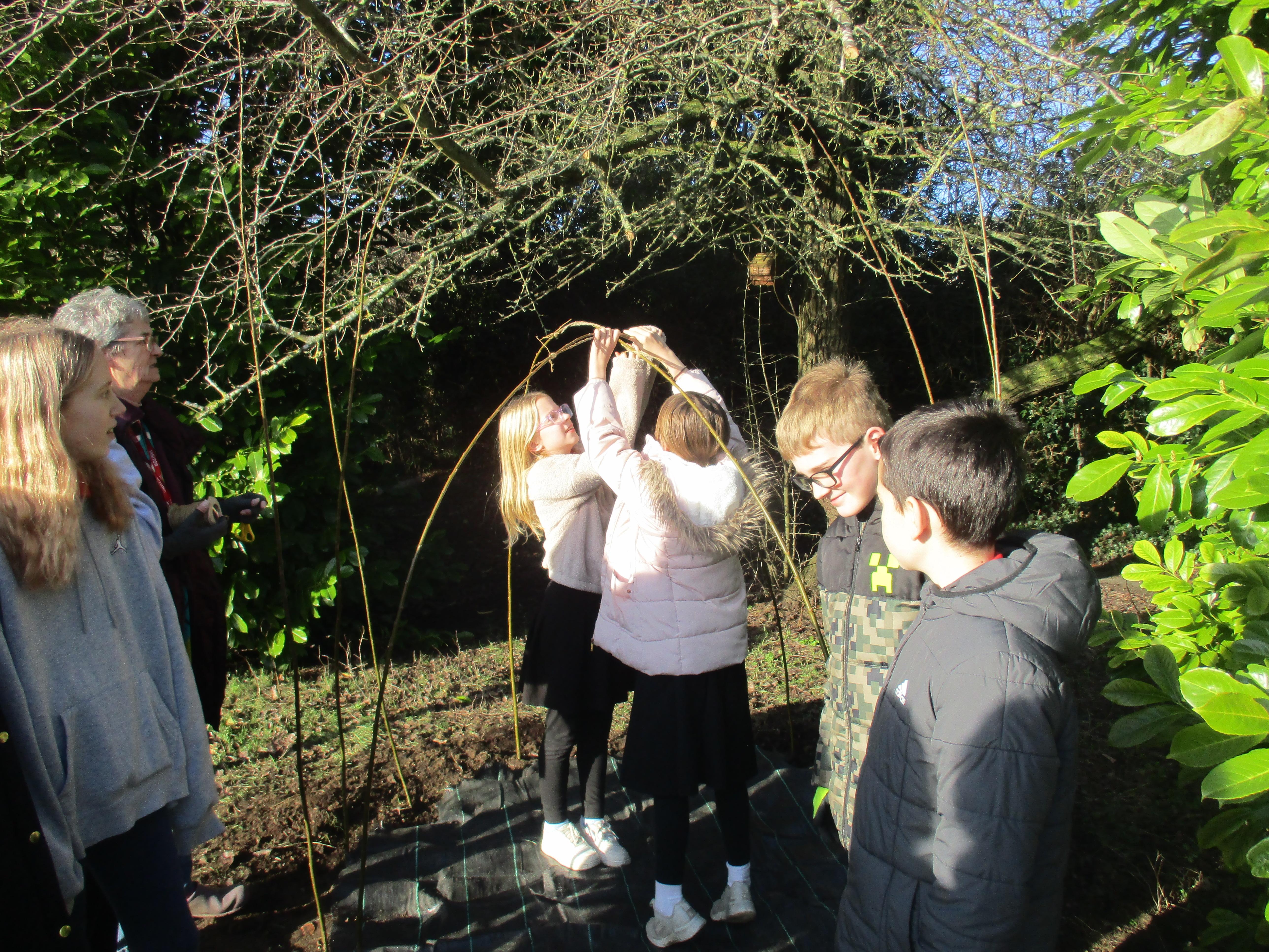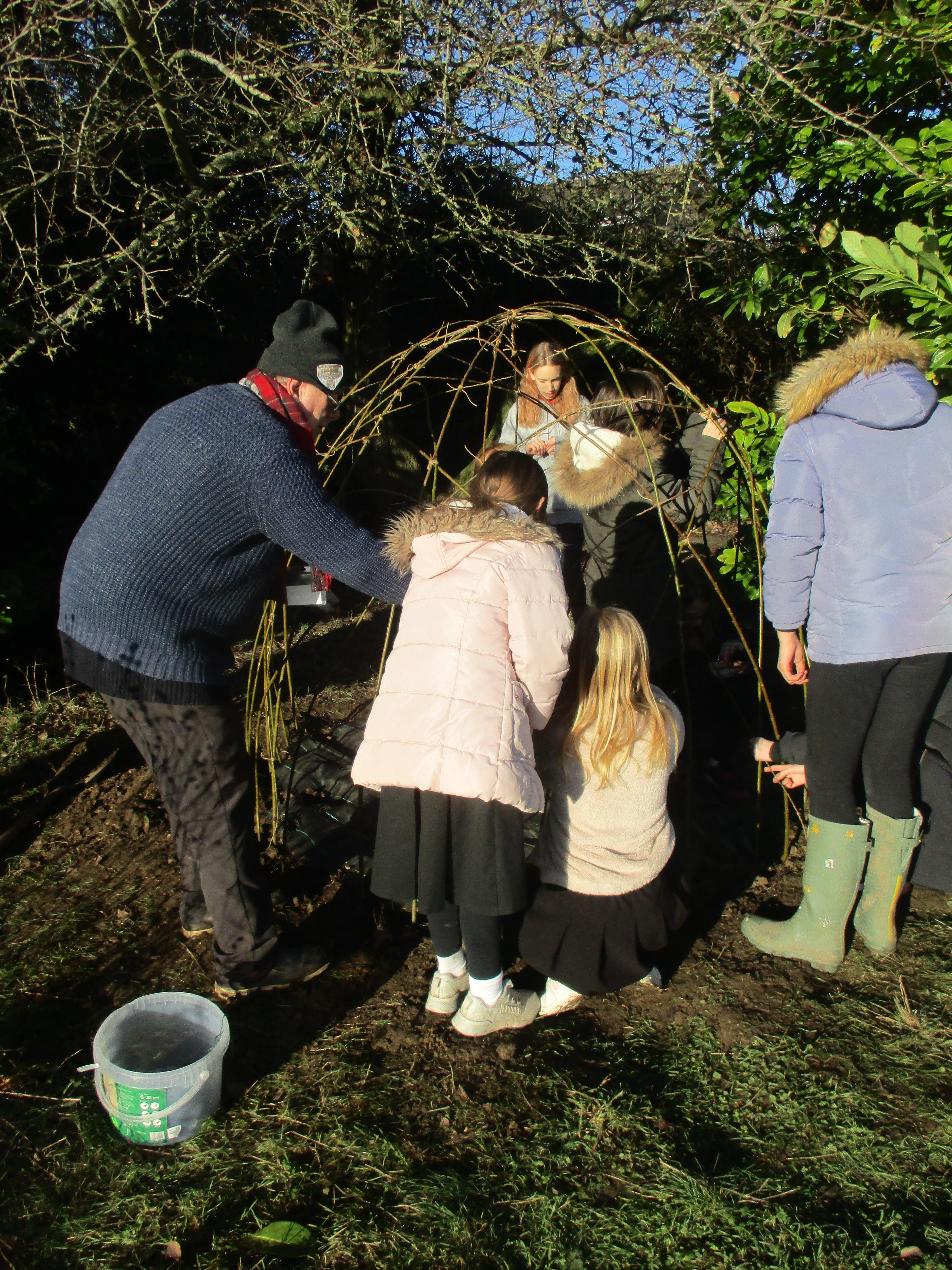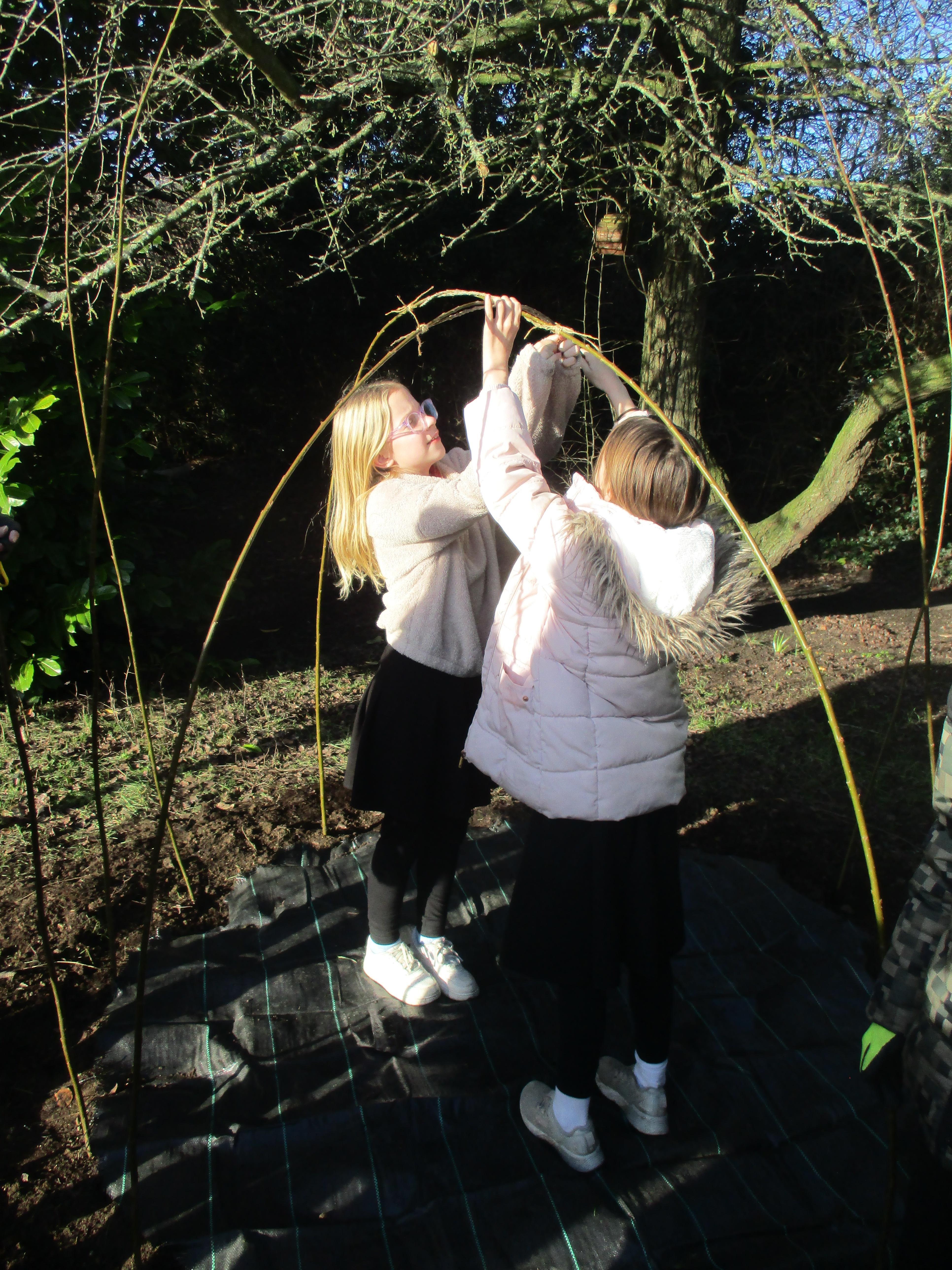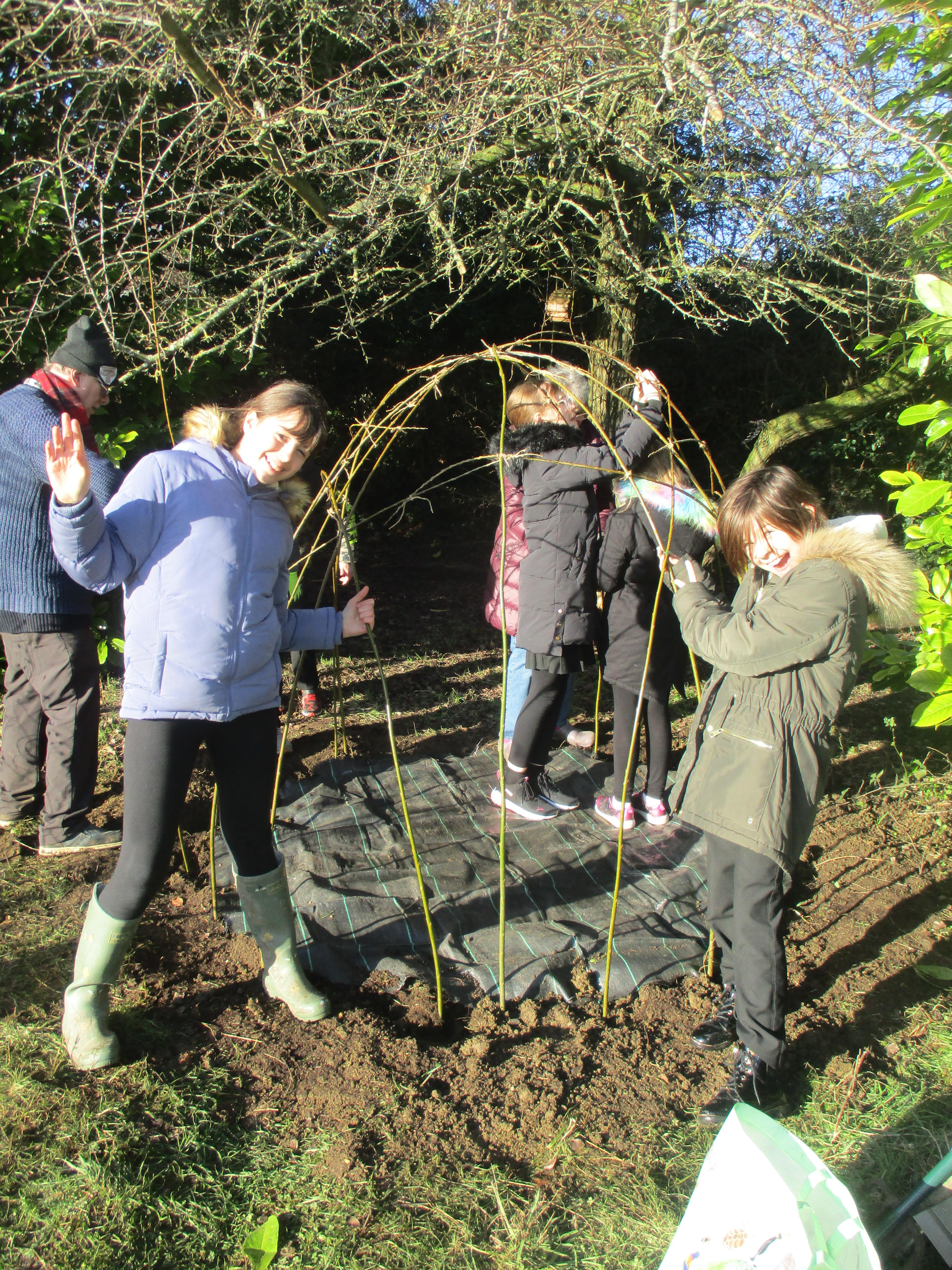 We are so lucky to now have a willow den within our much-loved nature area. It is perfectly situated in a sunny position to help it thrive. Now it has been planted and carefully woven to strengthen its structure, we will await it taking root and developing into a fun den for children of all ages to enjoy. It could also provide a peaceful spot in which to read, or just sit quietly and listen to birdsong as we have so many different types of birds enjoying our feeders now. We have a resident robin that often watches us work; he has eluded us when we have tried to capture him on camera so far, but we will keep trying! Thank-you to everyone who has donated fat-balls for our birds: we really appreciate you helping us help our birds. We always need donations, so if you ever have any spare fat-balls or birdseed, please send these in to our school office who can accept any donations that do not contain nuts.