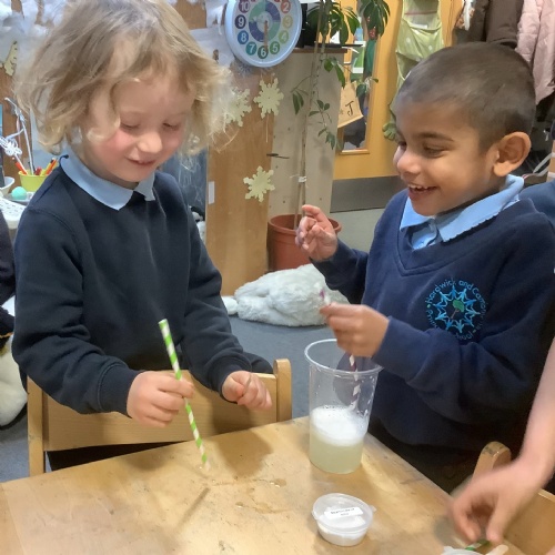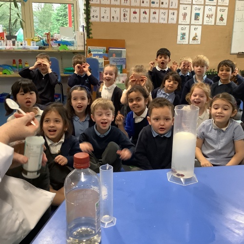 Science Visit for both Reception classes, from Little STEAMers with a chemistry workshop