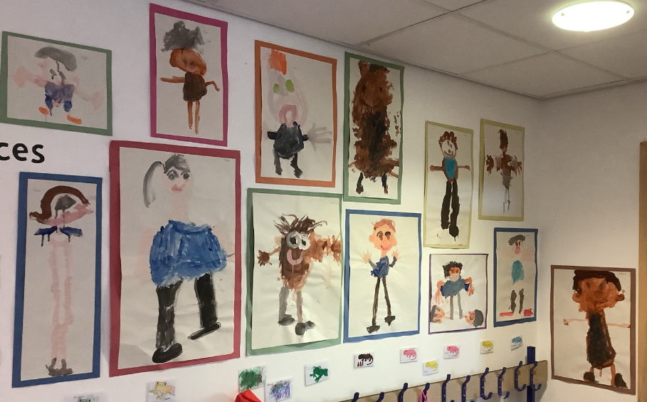 Reception have been exploring the theme of individuality as part of their All About Me topic. Pupils have been studying their own features closely, observing skin, hair, and eye colour, and developing their skills in colour mixing, brush control, and proportion through self-portrait painting. They created detailed portraits using layered paint to capture tones and textures, which are now displayed in our very own gallery space. The focus has now shifted to exploring personal interests and celebrating the different skills and talents each child brings. Pupils are practising expressive mark-making and composition as they represent what they enjoy and what they aspire to, building confidence in their creativity while learning to respect and appreciate the diversity of others.